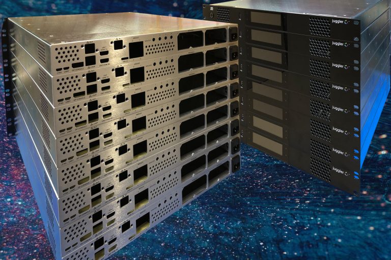 Comprising machined / plated / painted extruded front and rear panels, a mix of silk screen and digital printing and fabricated steel base & lid, the 19” rack-mounting Juggler chassis that Verotec has been making for the last 18 months shows off our in-house manufacturing capability very well.