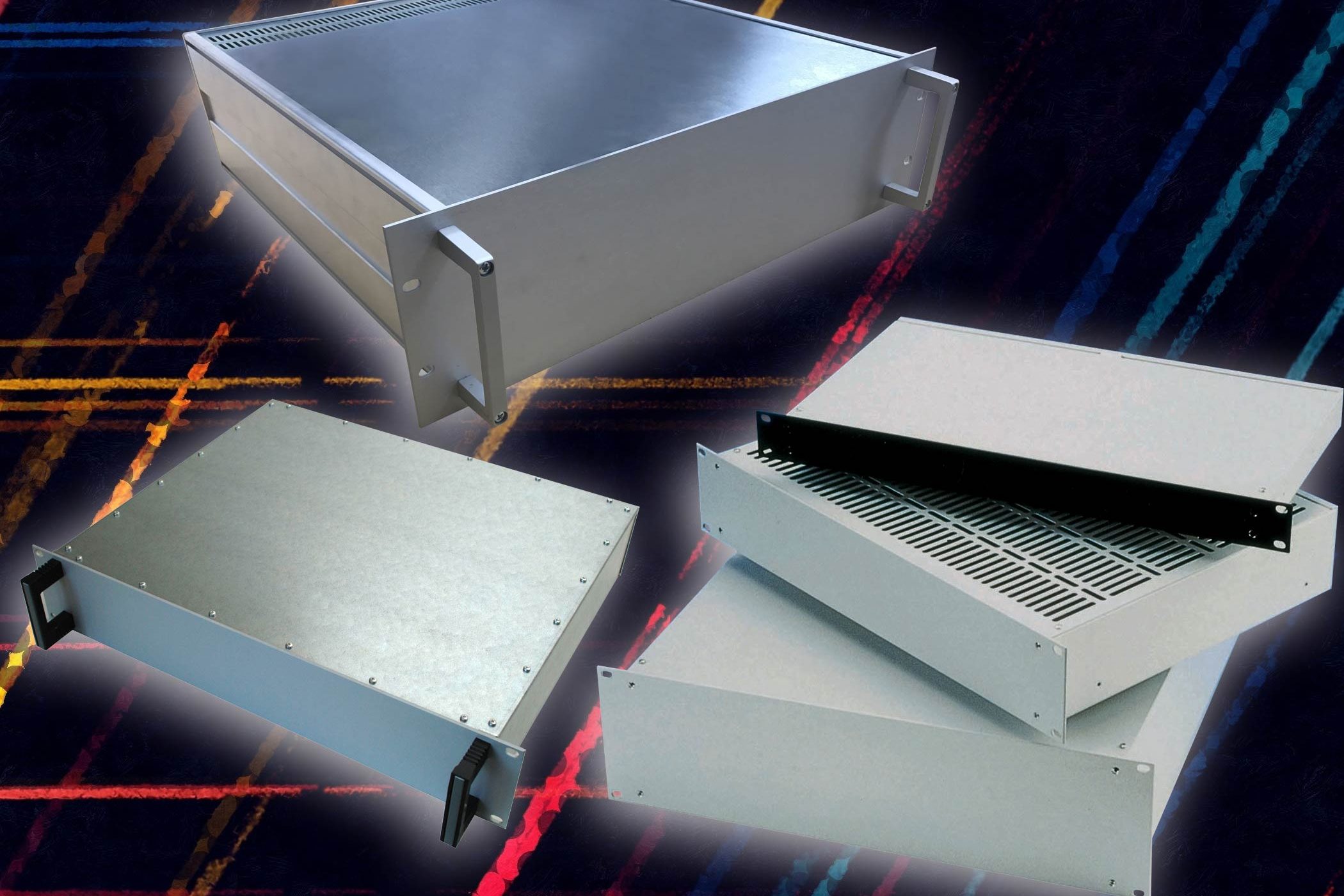 The standard general-purpose rack cases are available in heights of 1 U to 6U and depths of 250, 350 and 450mm. User can specify either vented or unvented top and base covers, a 3mm clear anodised or 2mm black painted steel front panel and optional grey or black front handles. They can be supplied with or without a rear panel and all sizes are fitted with mounting locations for optional slimline telescopic slides. To ensure that heavily loaded units are properly supported, chassis runners rated at 50kg are available as optional extras.
